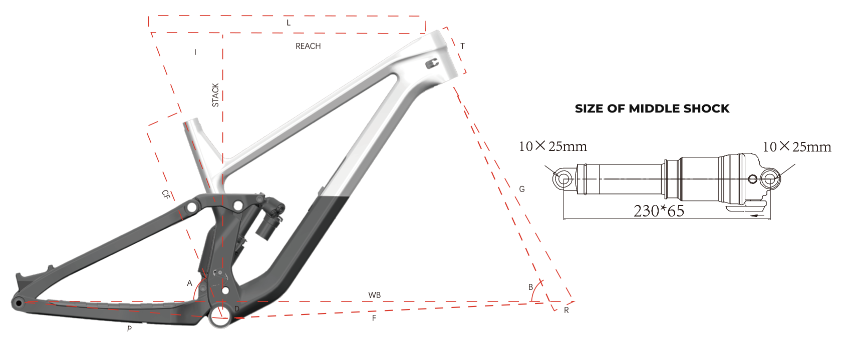 - 后避震: RS DLXSEL230X65mm(10x25mm)